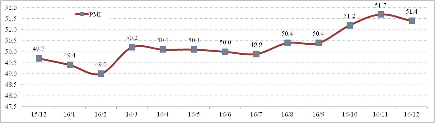 分析認為:從2016年P(guān)MI表現(xiàn)來看,顯示經(jīng)濟運行中的積極因素增多,經(jīng)濟下行壓力趨向減緩,企穩(wěn)向好發(fā)展態(tài)勢較為明顯,為2017年經(jīng)濟穩(wěn)定發(fā)展奠定了良好基礎(chǔ)。