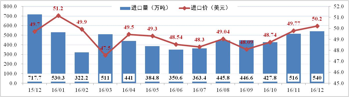 供給方面:12月份全國電解鋁有效產能為4,219.5萬噸,運行產能3,615.3萬噸,開工率為85.68%。其中,12月份電解鋁總產量為294.2萬噸,日化產量9.49萬噸,供應持續增加。調研數據顯示,2016年國內電解鋁已累計減產88.4萬噸;累計復產242.55萬噸,待復產約60萬噸;新產能已投產393.8萬噸,待投產71萬噸。