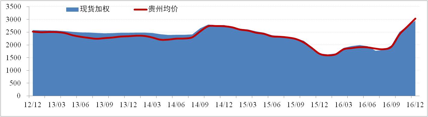 全國現貨價格方面,12月份國內氧化鋁現貨價格的上行逐漸進入平臺期,西南地區氧化鋁價格反超北方地區價格。全國氧化鋁現貨加權價為2,955元/噸,環比上浮7.77%。貴州現貨方面,氧化鋁現貨加權價為3,035元/噸,環比上浮11.34%。12月份氧化鋁價格主要受電解鋁新產能持續釋放導致氧化鋁供應略緊,以及山西重慶氧化鋁環保檢查影響。