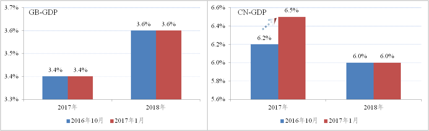 2016年全球經(jīng)濟(jì)可謂不溫不火。一方面主要國家經(jīng)濟(jì)繼續(xù)復(fù)蘇;另一方面全球經(jīng)濟(jì)增長乏力,多數(shù)國家經(jīng)濟(jì)增速仍低于潛在增長率。1月份,國際貨幣基金組織(IMF)發(fā)布最新《世界經(jīng)濟(jì)展望》報告中,預(yù)計中國2017年經(jīng)濟(jì)增速為6.5%,較上期上調(diào)0.3個百分點(diǎn);維持世界經(jīng)濟(jì)3.4%不變。