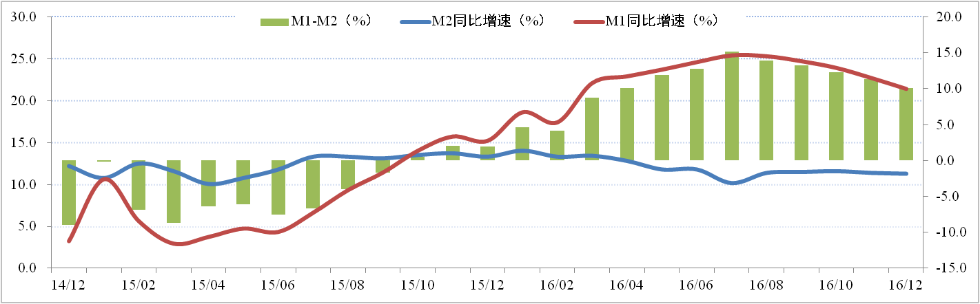 據(jù)央行數(shù)據(jù)統(tǒng)計顯示,中國12月M2貨幣供應(yīng)同比增速為11.3%,環(huán)比回落0.1個百分點(diǎn);M1貨幣供應(yīng)同比增速為21.4%,環(huán)比回落1.3個百分點(diǎn)。 M1與M2剪刀差進(jìn)一步縮小為10.1%。