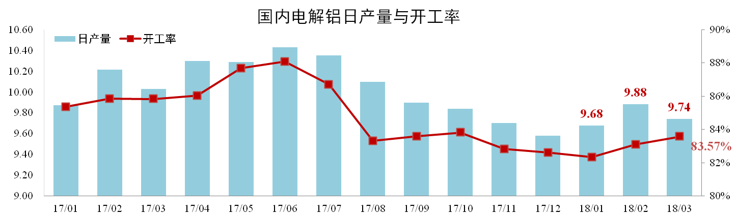 分析認為:基于復(fù)產(chǎn)和新投產(chǎn)需要周期,3月份產(chǎn)能沒有出現(xiàn)顯著增長,部分電解鋁企業(yè)檢修致使日產(chǎn)量有所下調(diào)。二季度隨著天氣轉(zhuǎn)暖、需求復(fù)蘇合規(guī)產(chǎn)能將加速投產(chǎn)復(fù)產(chǎn),預(yù)計后期日產(chǎn)量及開工率將有所上升。