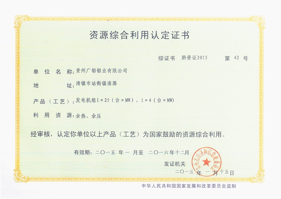 該項證書的取得也是對貴州鋁業公司在節能環保方面的支持和肯定,未來,我們必將繼續堅持可持續發展,不斷加強對生產加工技術的投入,持續提高資源利用率。