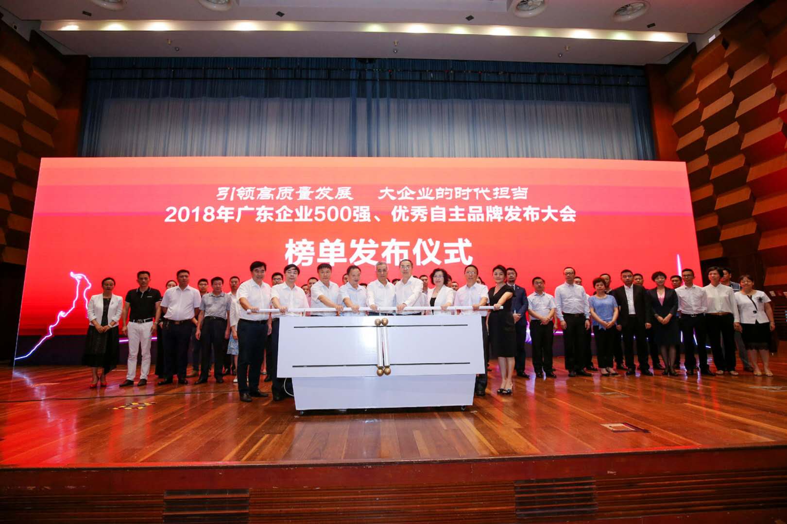 發(fā)稿時間:2018-08-138月9日,由廣東省企業(yè)聯(lián)合會、廣東省企業(yè)家協(xié)會主辦的“2018廣東企業(yè)500強、優(yōu)秀自主品牌發(fā)布大會”在廣州市白云國際會議中心隆重舉行。