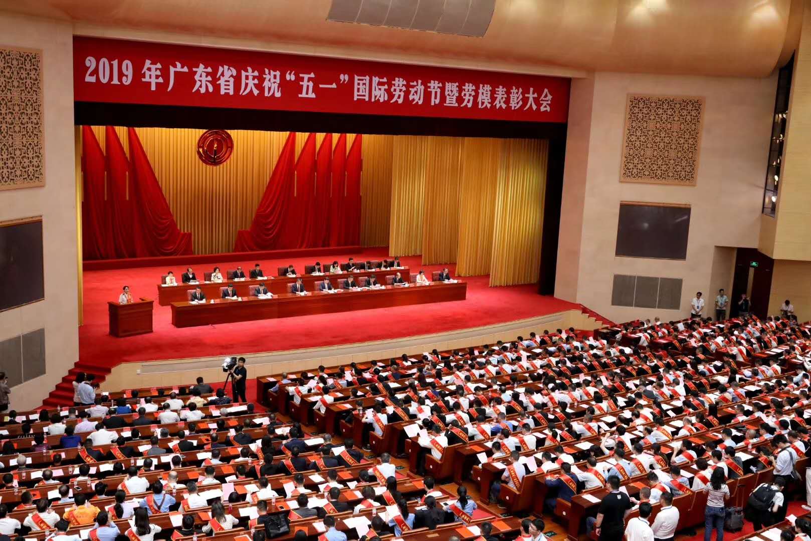 4月29日上午,2019年廣東省慶祝“五一”國際勞動節暨勞模表彰大會在廣州召開,會上向2019年獲表彰的五一勞動獎狀、獎章的單位和個人代表頒獎。